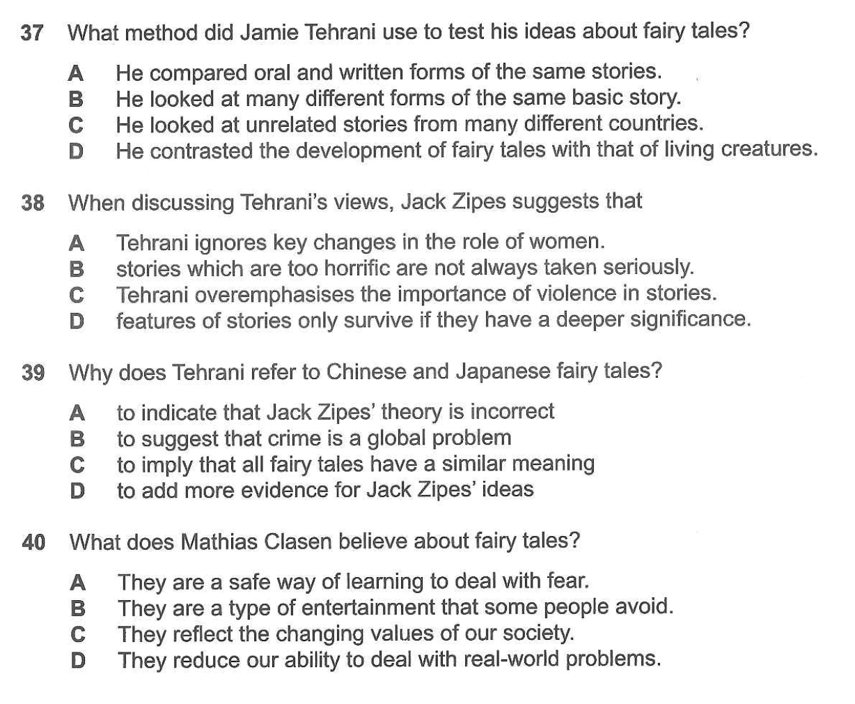 Write the correct letter  A, B, C, or D in the box 37 - 40